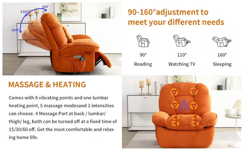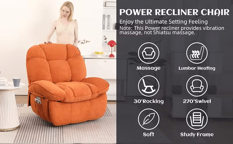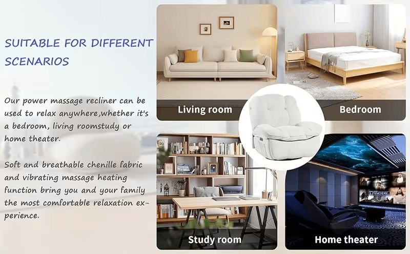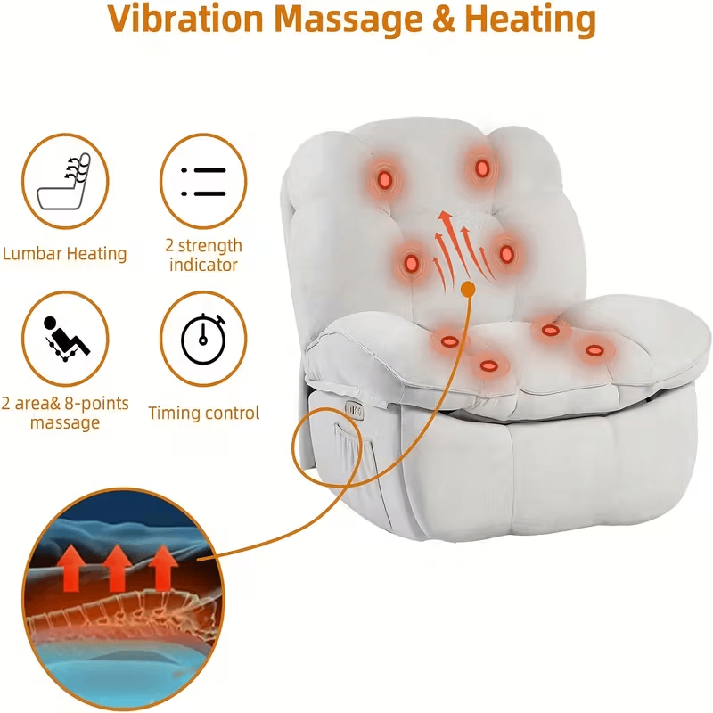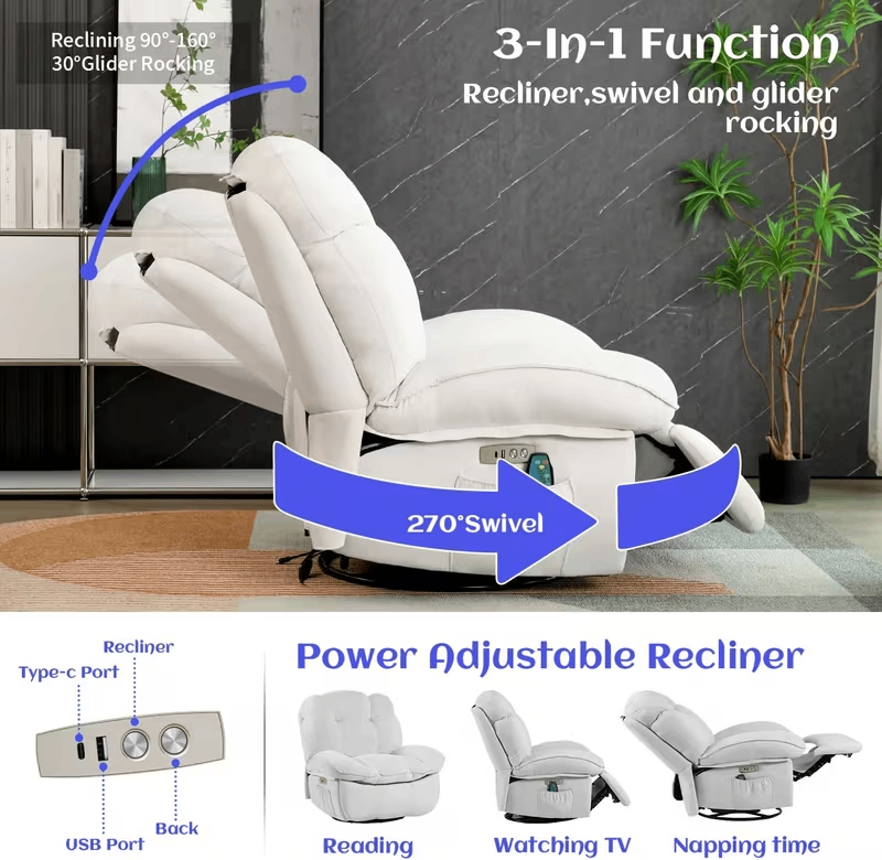 🎄2025 Christmas Sales🎅White Power Recliner, Holiday Gifts, Padded Swivel Chair With Vibrating Massage And Heating, Modern Single Sofa Glider Recliner With USB, USB-C And Side Pockets, Living Room