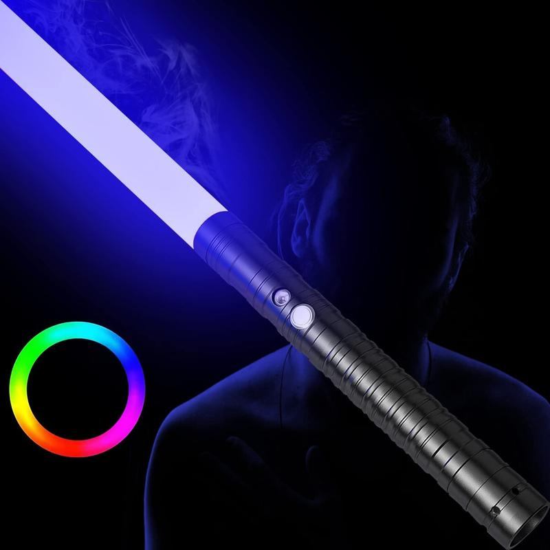 💥New Year Clearance Sale!❗❗【Two-pack】Lightsaber RGB 14 Colors Change USB Rechargeable Metal Handle Light Sword Double-edged Change Heavy Dueling Sound Two In One Light Metel Handle LED USB Charging