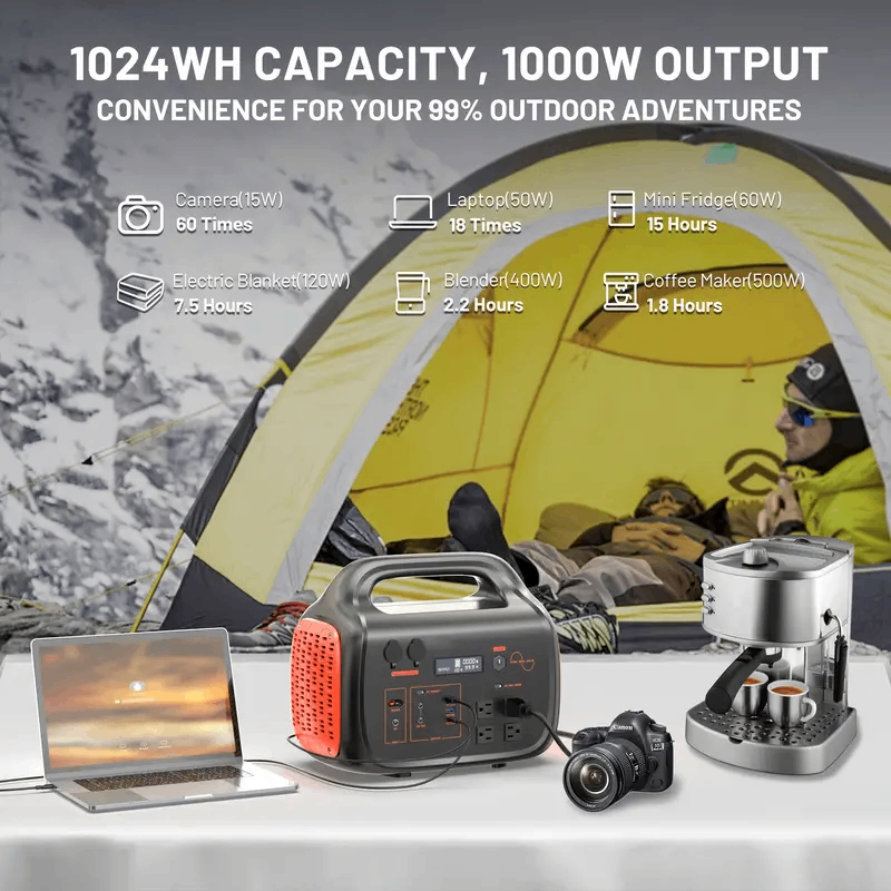 1000W Portable Power Station | 1024Wh Compact LiFePO4 Battery | Dual 110V AC, DC, USB QC3.0 | LED Flashlight | Ideal for Camping, RV, Emergency Home Use