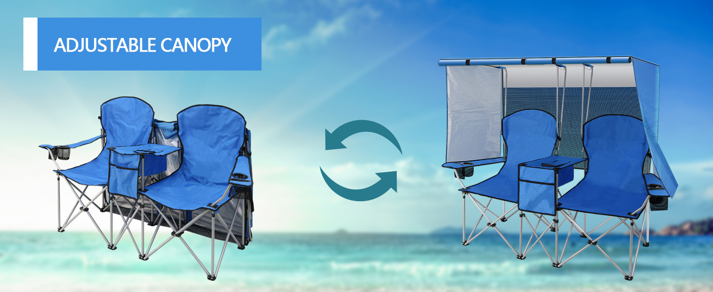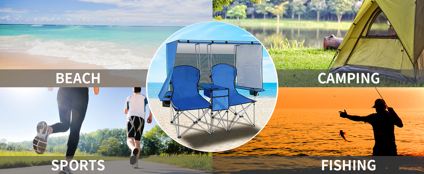 The outdoor chair with canopy can be used as a beach chair, camping chair, fishing chair, hiking chair, picnic chair, lawn chair, traveling chair according to your different needs. Perfect companion for your family camping trips, tailgating, etc.