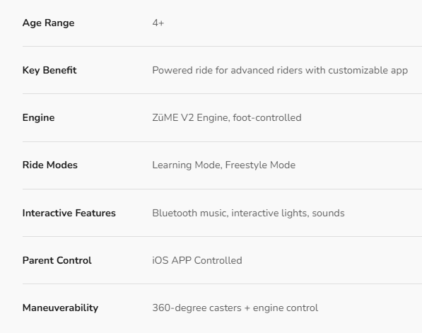 Your Power Pony is uniquely powered by our patented foot controlled ZüMEV2 engine. lt is easy and fun to ride. lt can move quickly so take your timeand start out slowly and you will be racing, turning, and spinning in no time.