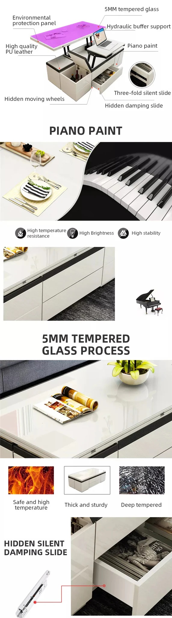 Overall, the Easy Convertible Modular Dynamic Coffee Table is a practical and stylish choice for any home. Its versatility and adjustability make it the perfect piece of furniture for any living space.
