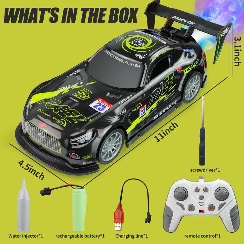 🚗 New Version 1:16 Drift RC Car Toy for KidsHigh-Speed RC Drifting FunFeel the excitement with this 1:16 scale RC drift car—perfect for both beginners and pros. Race, drift, and stunt across multiple terrains with ease and control. Enjoy longer run times with a high-capacity rechargeable battery. Charge via USB and get back to racing without constant replacements.Advanced 2.4GHz SystemThe advanced 2.4GHz system ensures smooth, lag-free control from a distance. So you can race without signal drops or interference. This reliable system allows for uninterrupted fun, making every drift session smooth and enjoyable.4-Wheel-Drive SystemEquipped with a 4-wheel-drive system, this RC car handles asphalt, gravel, and off-road trails while maintaining balance and precision. Drift Tires for Real Stunts make sharp turns and cool maneuvers effortless—perfect for racing or stunt battles.Bright LED LightsDrive in style day or night! Bright LED lights activate while driving, adding flair and enhancing visibility in low-light play. Enjoy enhanced visibility during your RC adventures.Durable MaterialsMade from durable, quality materials that can handle bumps, crashes, and rough play—ideal for kids and hobbyists alike. This robust design ensures long-lasting enjoyment and durability.What's Included·1 x 1:16 Scale Remote Control Car·1 x 2.4GHz Remote Control·1 x Rechargeable Battery·1 x USB Charging Cable·1 x User ManualSize: 12*7*6 in. Weight: 1.7 lb. Perfect for kids and hobbyists alike.