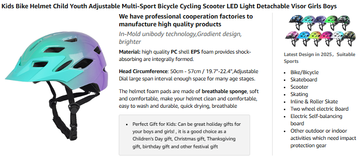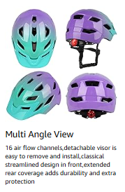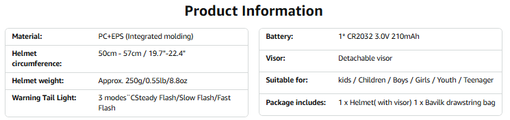 Kids Bike Helmet,Bavilk Kids Boys Girls Bike Helmets with LED Light Detachable Visor Children Youth Teen Multi-Sport for Skating Cycling Scooter Skateboard Adjustable & Lightweight 19.7-22.4