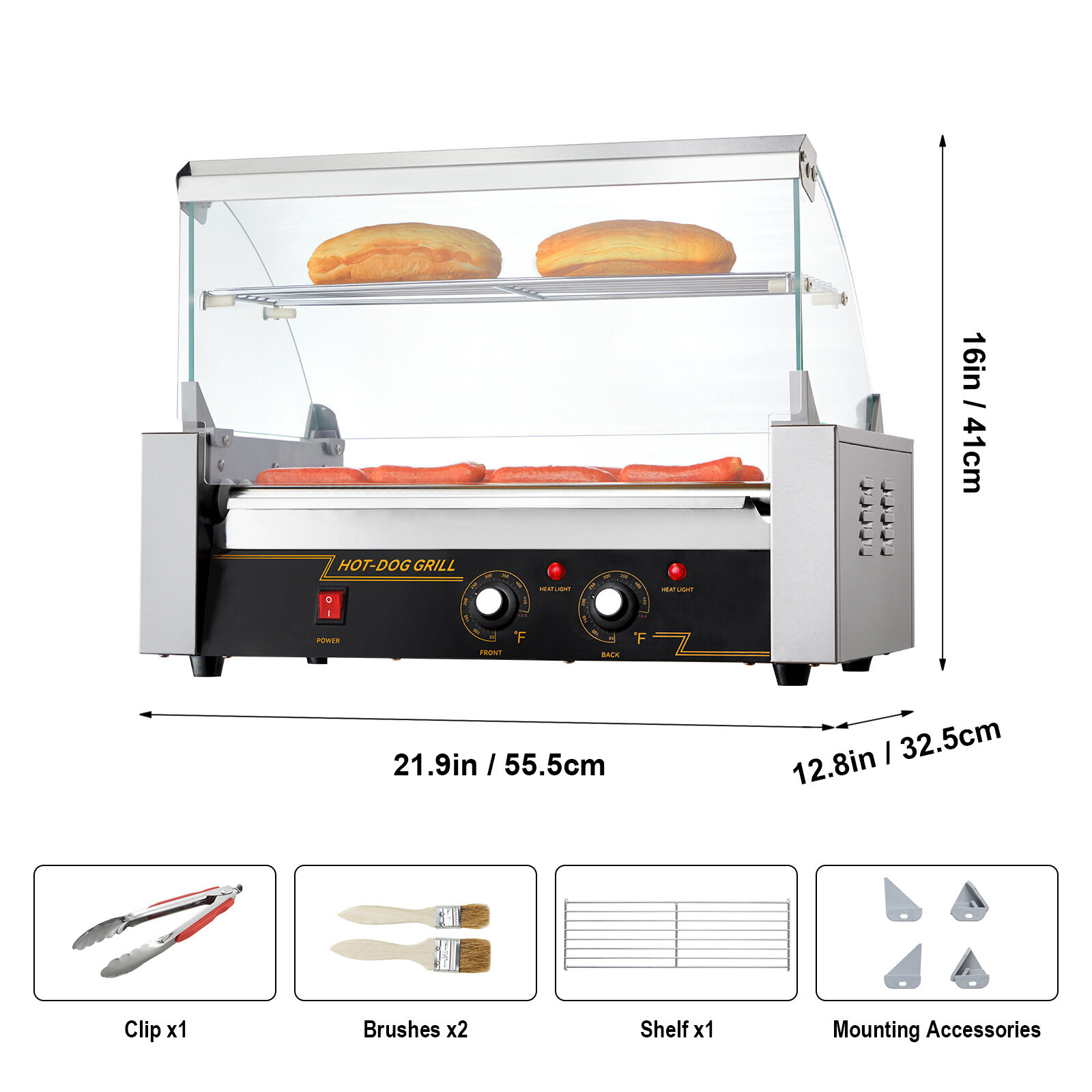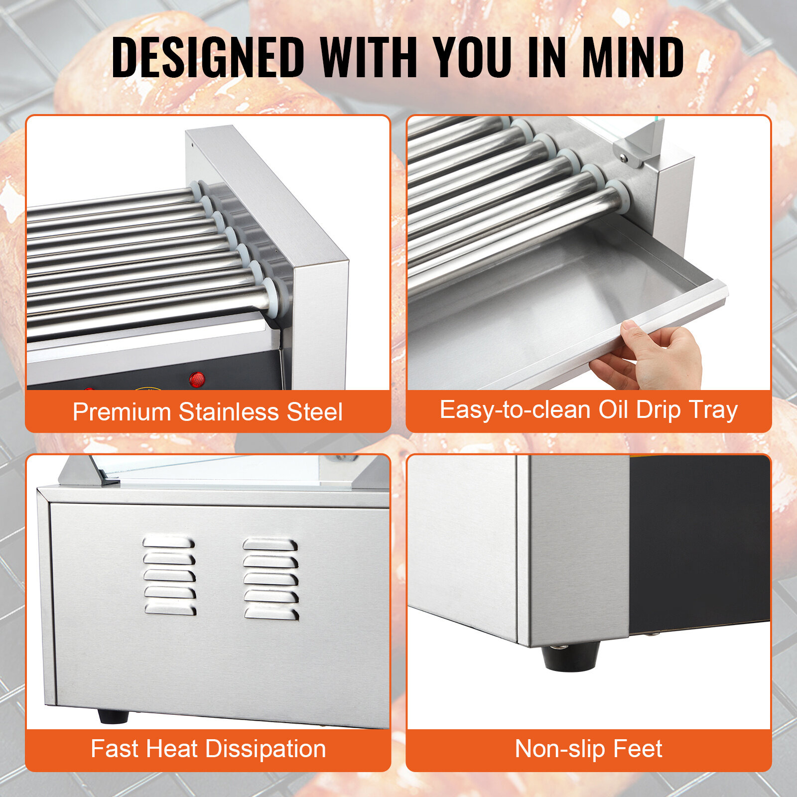 Efficient Cooking Design – 360° rotating rollers powered by a 1050W motor for even heating — enjoy perfectly grilled hot dogs in just 15 minutes.