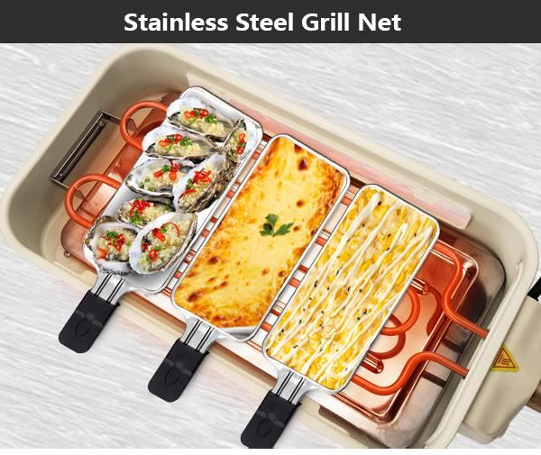 【RAPID HEATING & CONSTANT TEMPERATURE】The indoor smokeless grill for kitchen comes with a large Non-Stick grilling plate 16 x 9 inch, making it great for parties and family fun with delicious food. With 1500 watts power smokeless indoor grill effortlessly melts cheese, cook up meats, veggies and seafood just in minutes