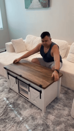 4 in 1 Multi-Function Coffee Table with 2 Sliding Barn Doors