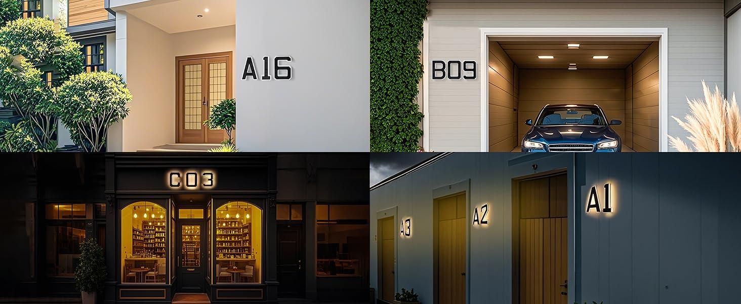 Modern LED House Number Light: The stylish black and white design emits warm light at night, making it an excellent address sign suitable for outside houses plaques decor. The LED house number sign provide excellent visibility, paired with different numbers and letters to make it easy for visitors, delivery drivers, and emergency service personnel to find your house.