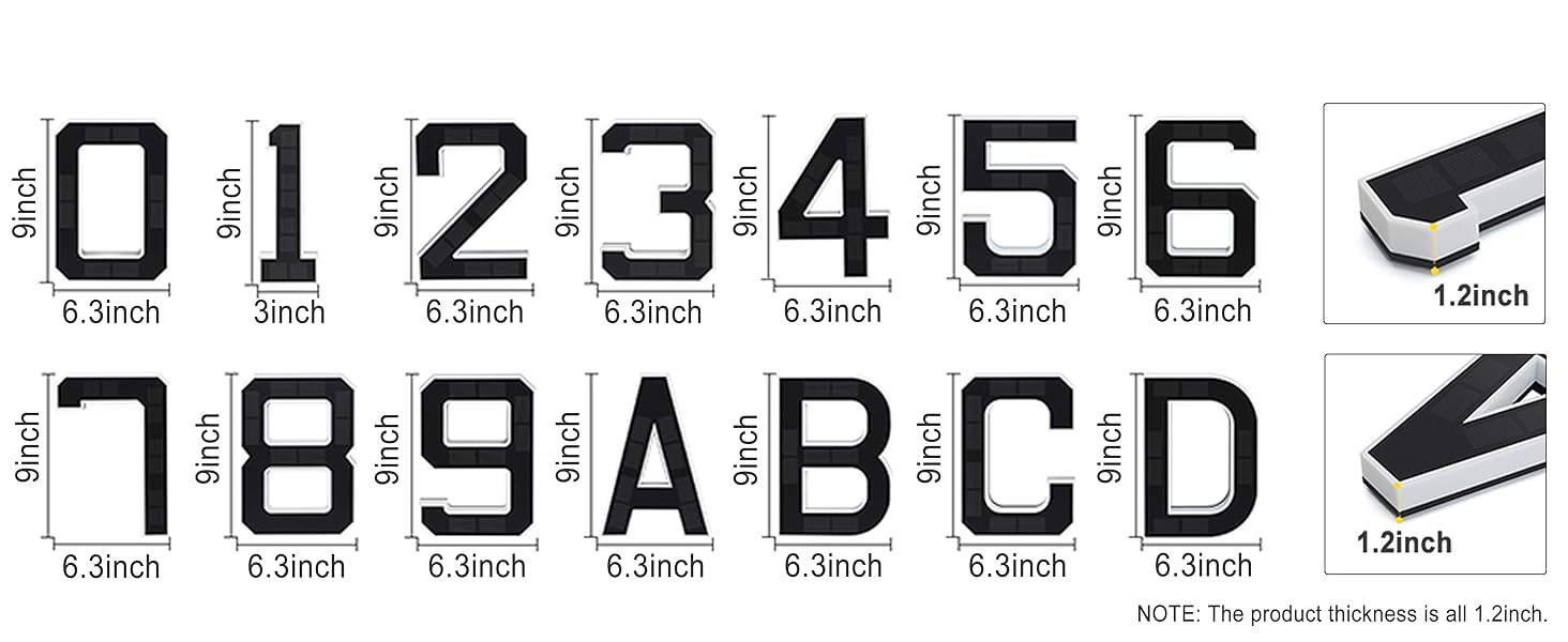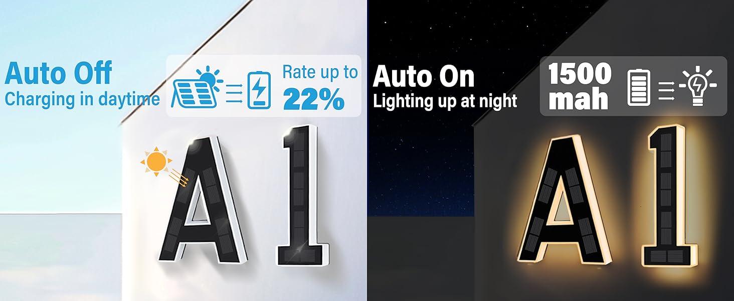 Solar Powered: Our solar house numbers are designed with solar panels on the surface, eliminating the need for additional wires or electricity, a perfect way to decorate houses outside plaques. The address sign is equipped with a 1500mAh NI-MH battery, charging for 6-8 hours under sufficient light can provide 9 hours of illumination.
