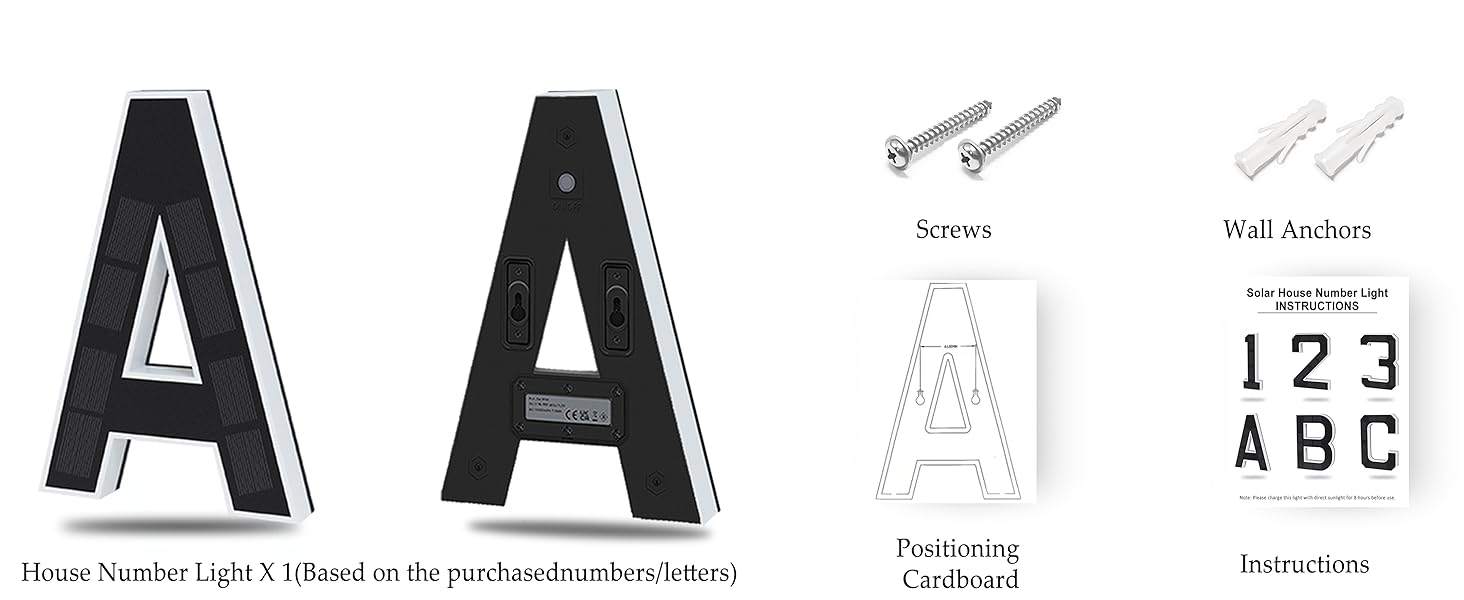 Intelligent Light Sensor: Our solar powered house number light has an automatic light sensor function. After turning on the product switch, the house number sign will automatically light up when the light is weak or at night and be turned off when there is sufficient light. Ensure easy operation and energy efficiency.